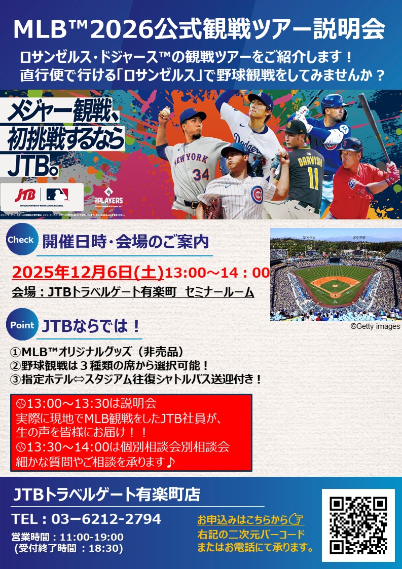 JTBはMLB™(メジャーリーグベースボール)のアジアにおけるトラベル&ホスピタリティ事業のオフィシャルパートナーです。さらに、2025年に日本の旅行会社として初めての「オフィシャルパートナー・オブ・ザ・ロサンゼルス・ドジャース」となりました。