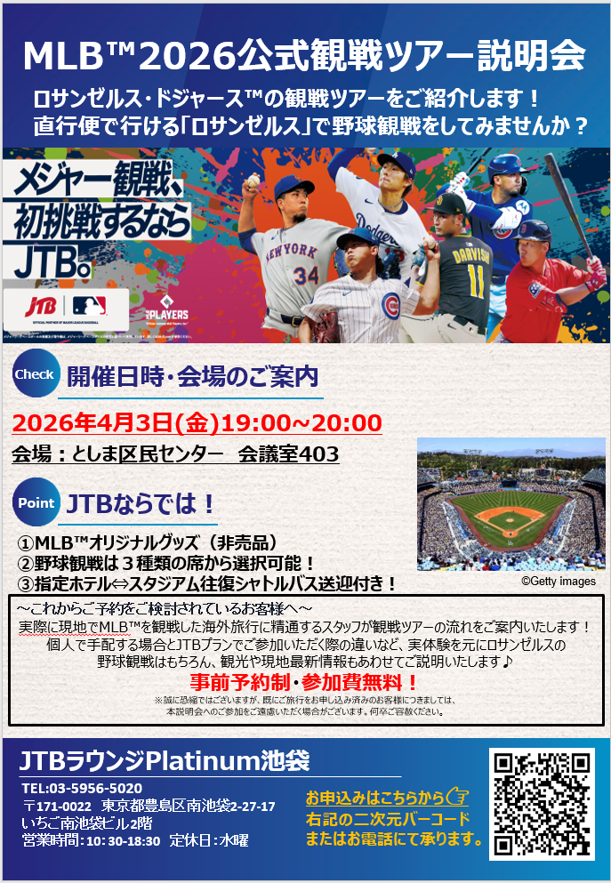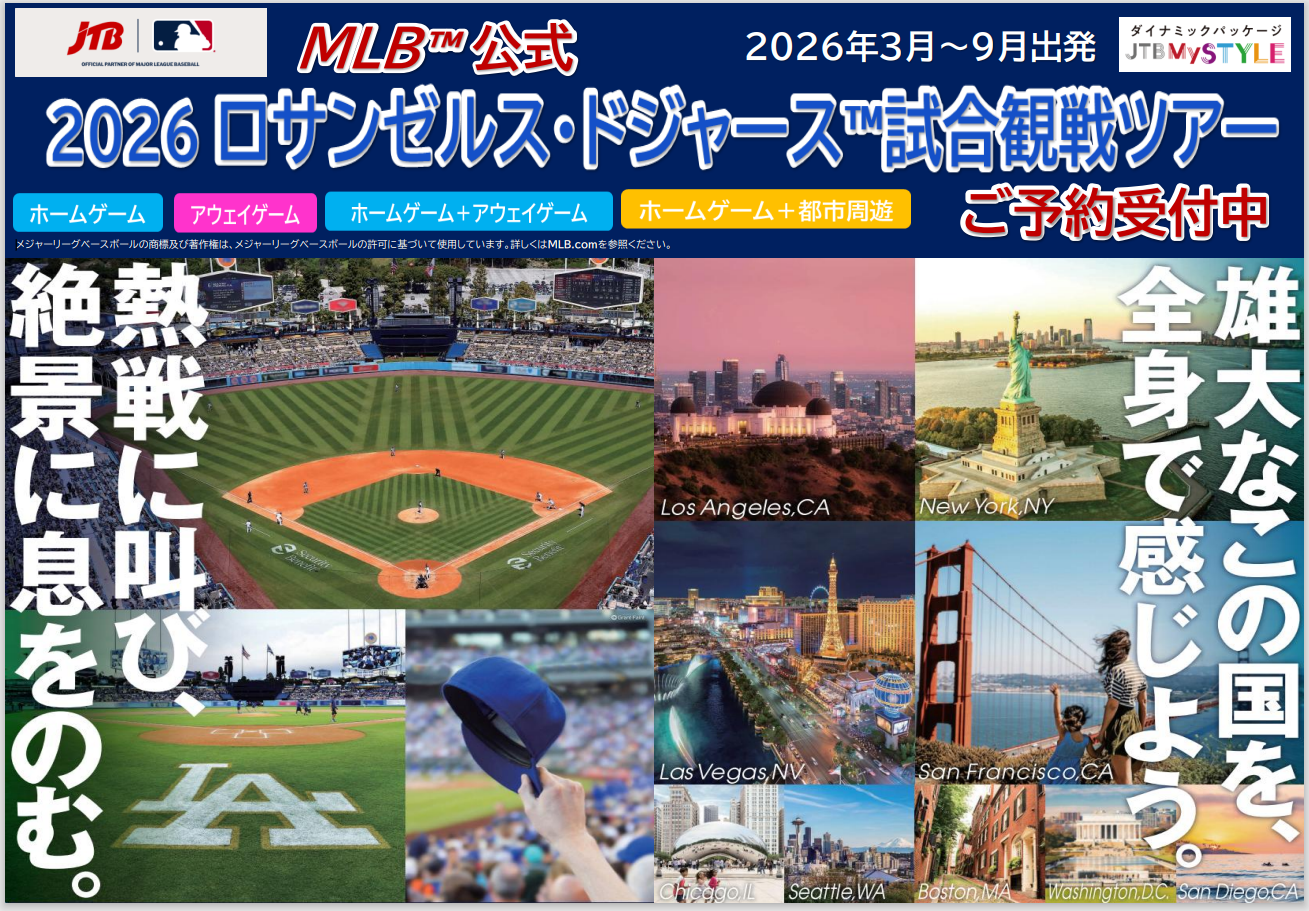 JTBはMLB™(メジャーリーグベースボール)のアジアにおけるトラベル&ホスピタリティ事業のオフィシャルパートナーです。さらに、2025年に日本の旅行会社として初めての「オフィシャルパートナー・オブ・ザ・ロサンゼルス・ドジャース」となりました。