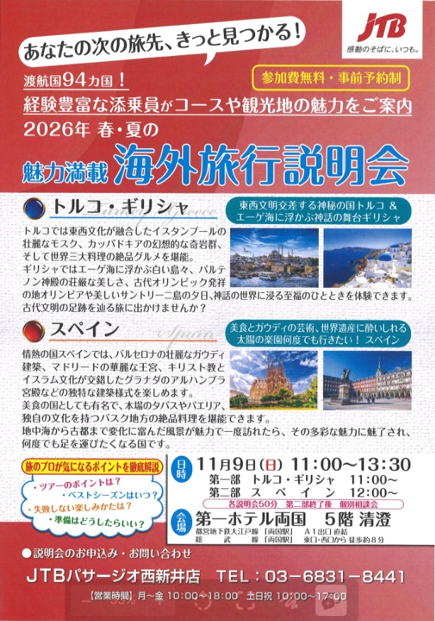 ご希望のお客様はJTBパサージオ西新井店までお問い合わせください😌