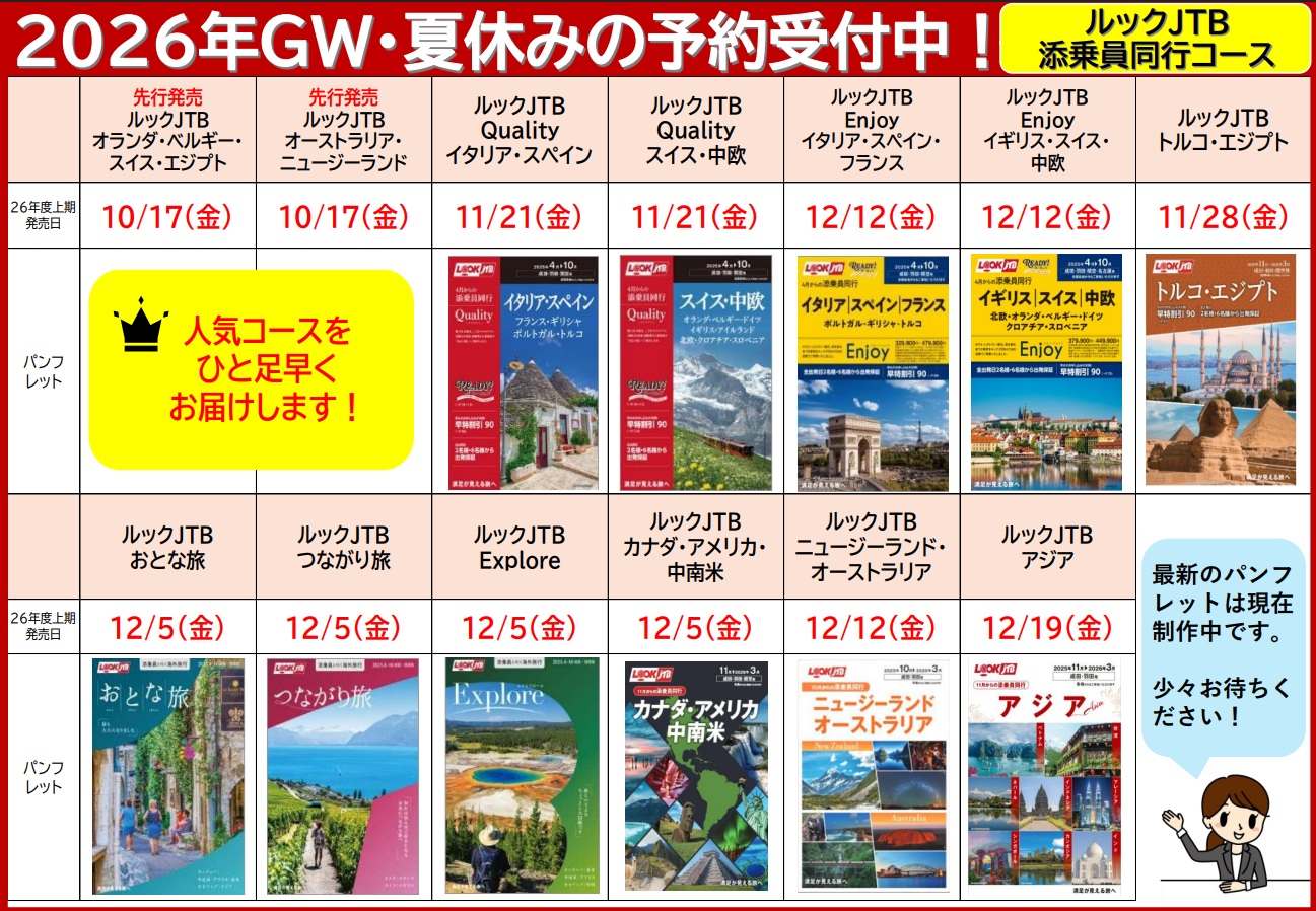 2026年4月~10月出発 LOOKJTB添乗員付コースが