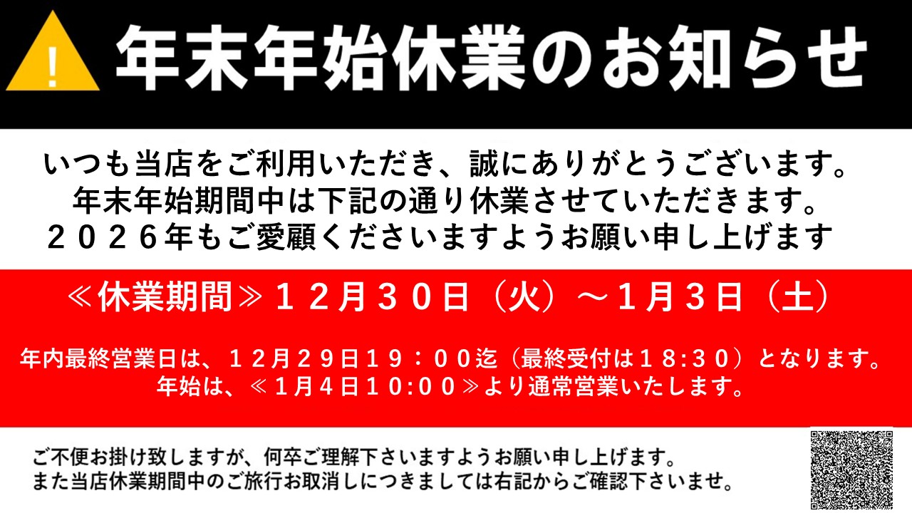 2025年12月30日(火)~2026年1月3日(土)まで