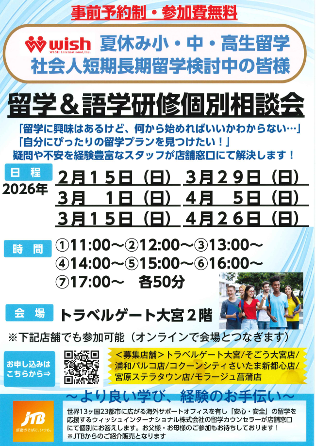 JTBトラベルゲート大宮にご来店いただき留学カウンセラーと直接相談が可能⭐