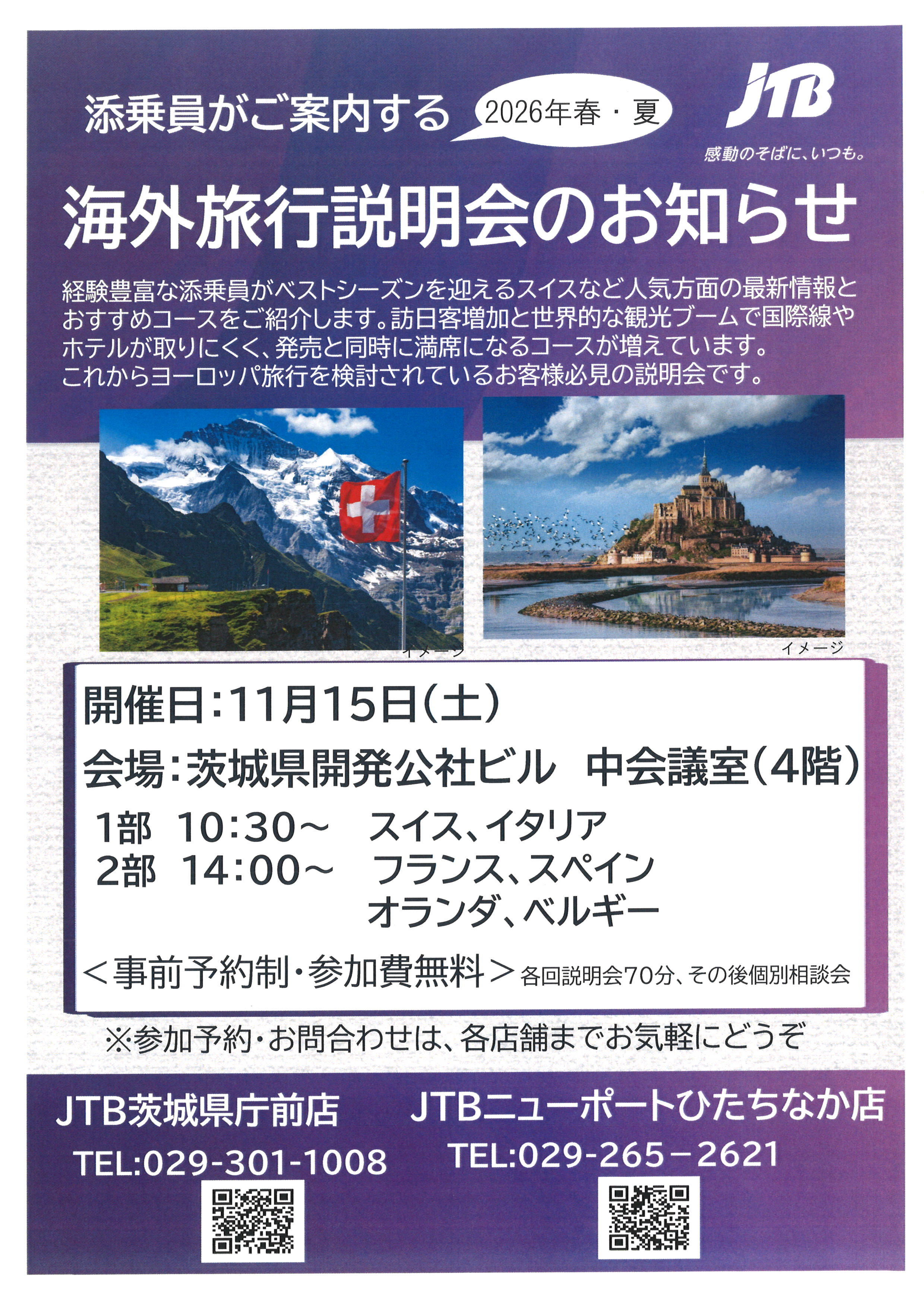 お問い合わせ、お申込みは:JTBニューポートひたちなか店