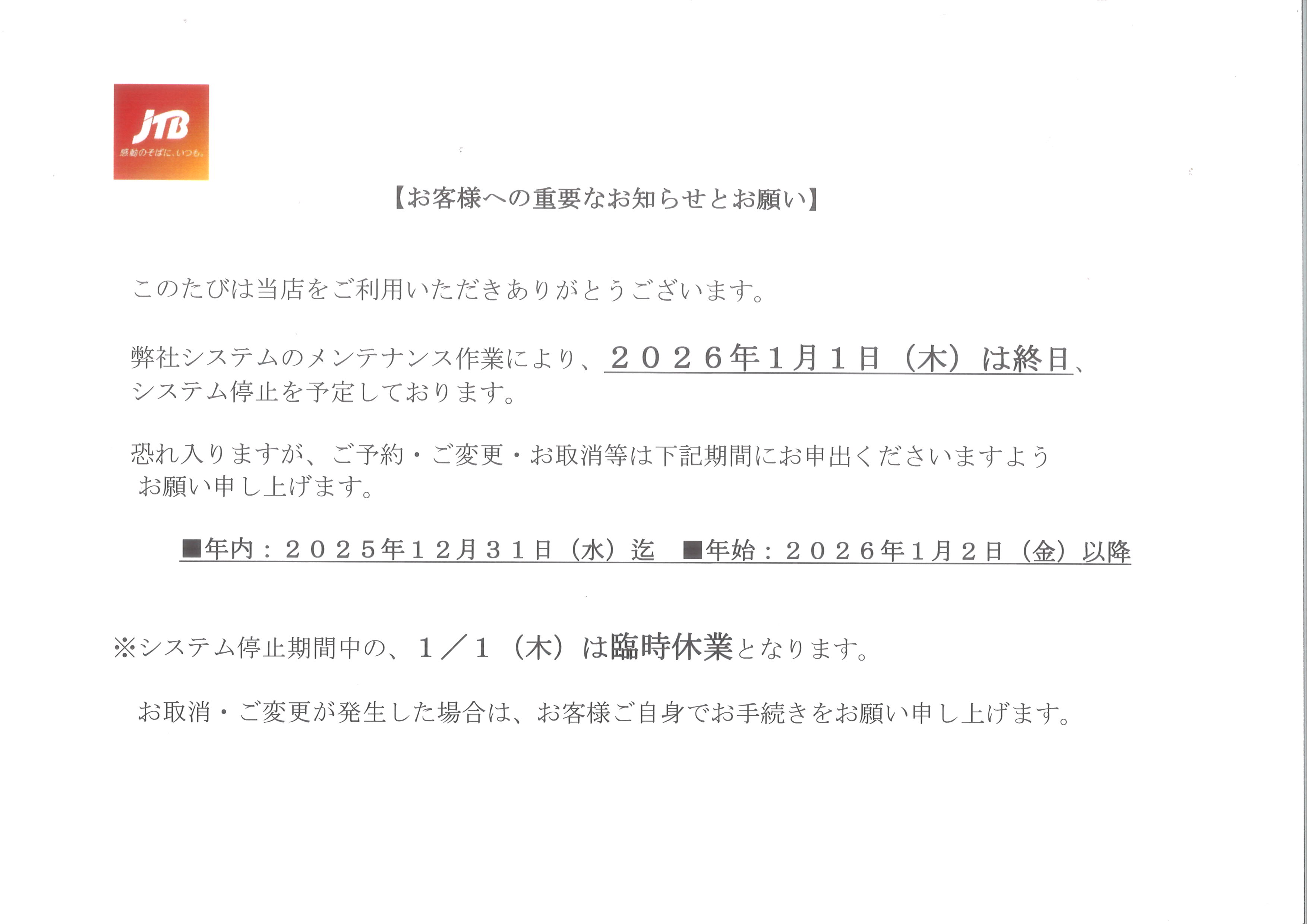 ※システム停止期間中の、1/1(木)は臨時休業となります。