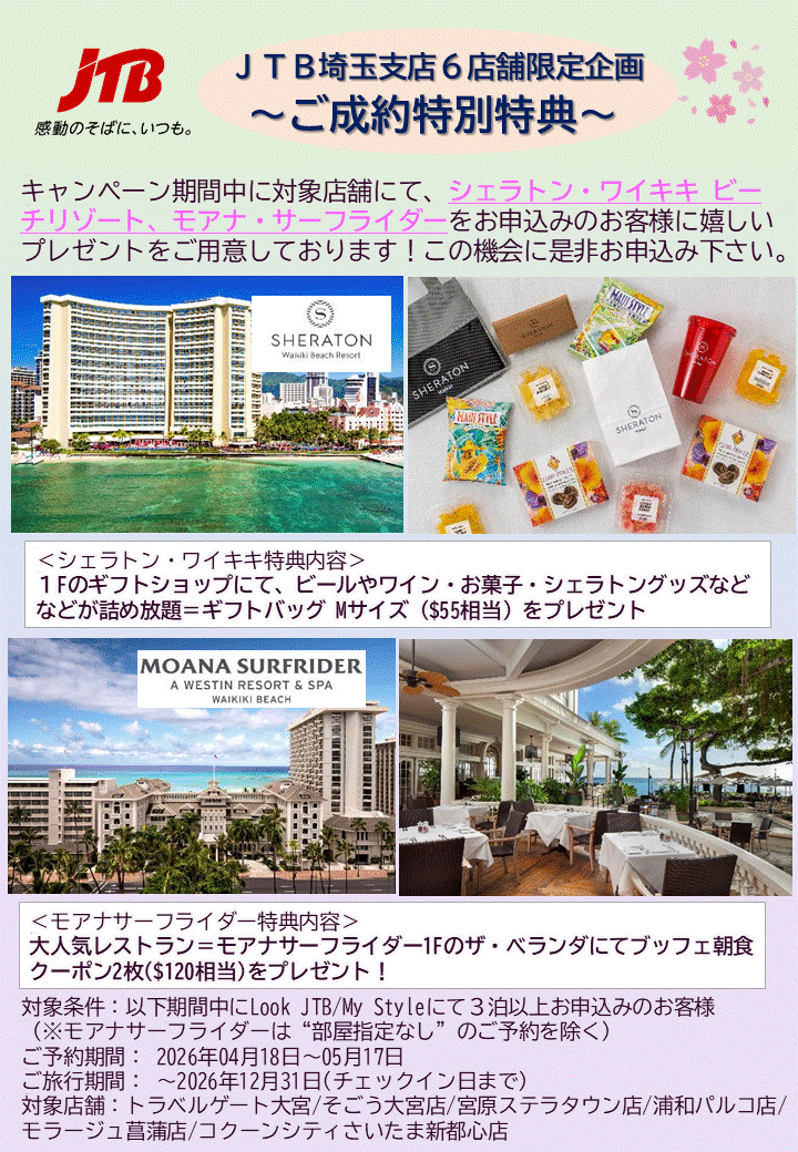 対象条件:上記期間中に、JTB My STYLEにて上記ホテル2泊以上宿泊されるプランでお申込みのお客様