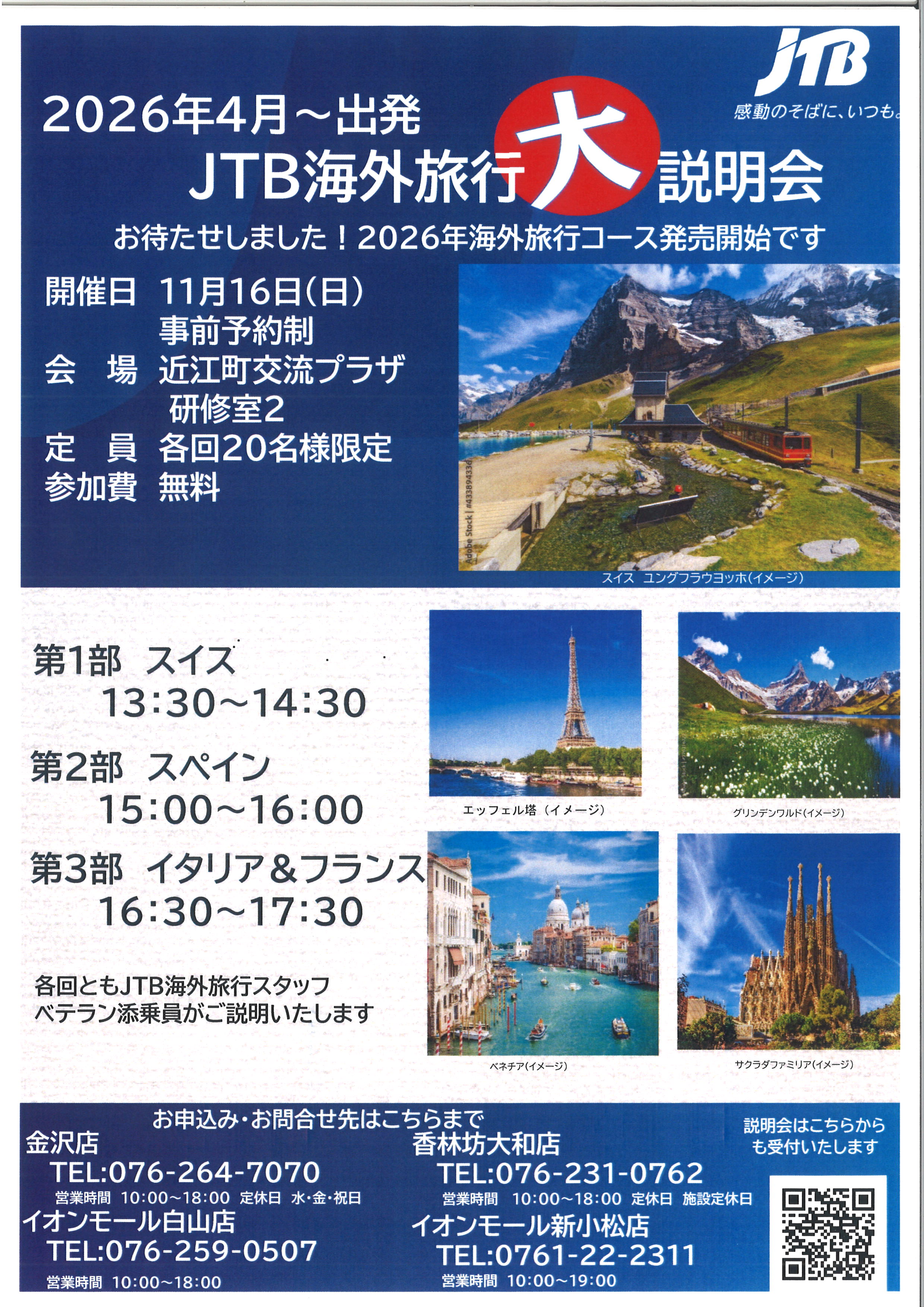 海外旅行をご検討中のお客様はぜひご参加ください。