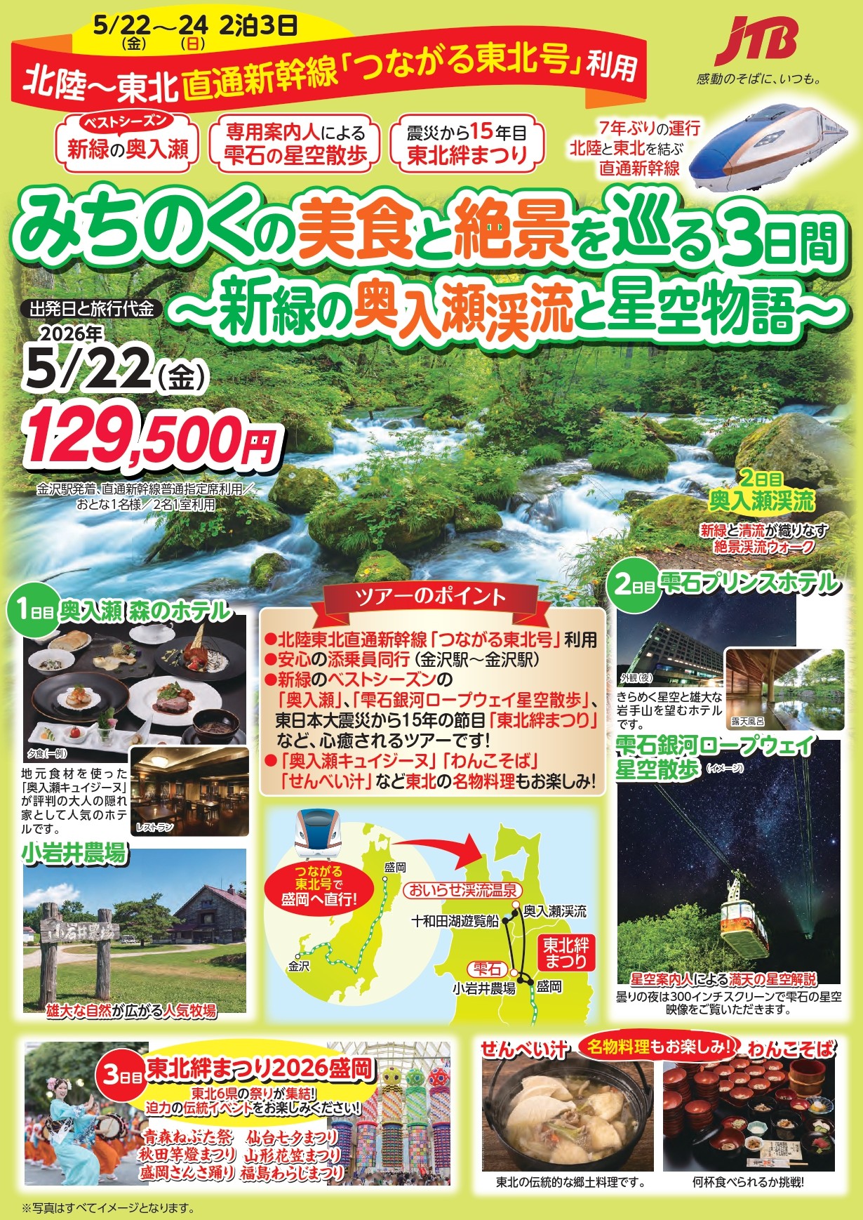 新緑のベストシーズン奥入瀬渓流や十和田湖遊覧船、小岩井農場などを巡ります♪