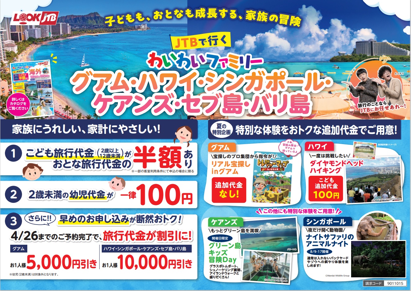 ・家族旅行応援!こども代金はおとなの旅行代金の半額あり!幼児代金は100円!