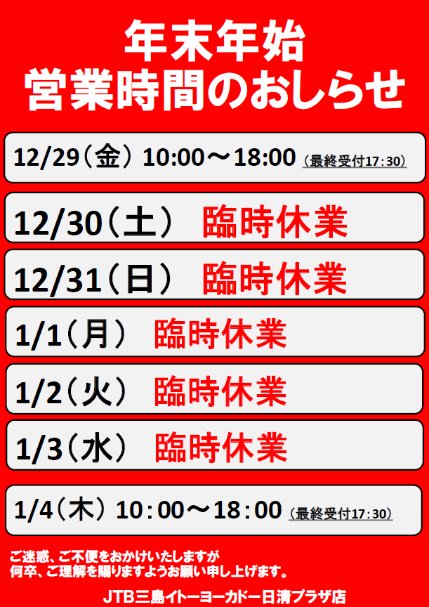 株式会社JTB三島イトーヨーカドー日清プラザ店