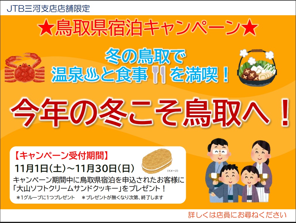 期間中に鳥取県ご宿泊をお申込のお客様に「大山ソフトクリームサンドクッキー」をプレゼントいたします