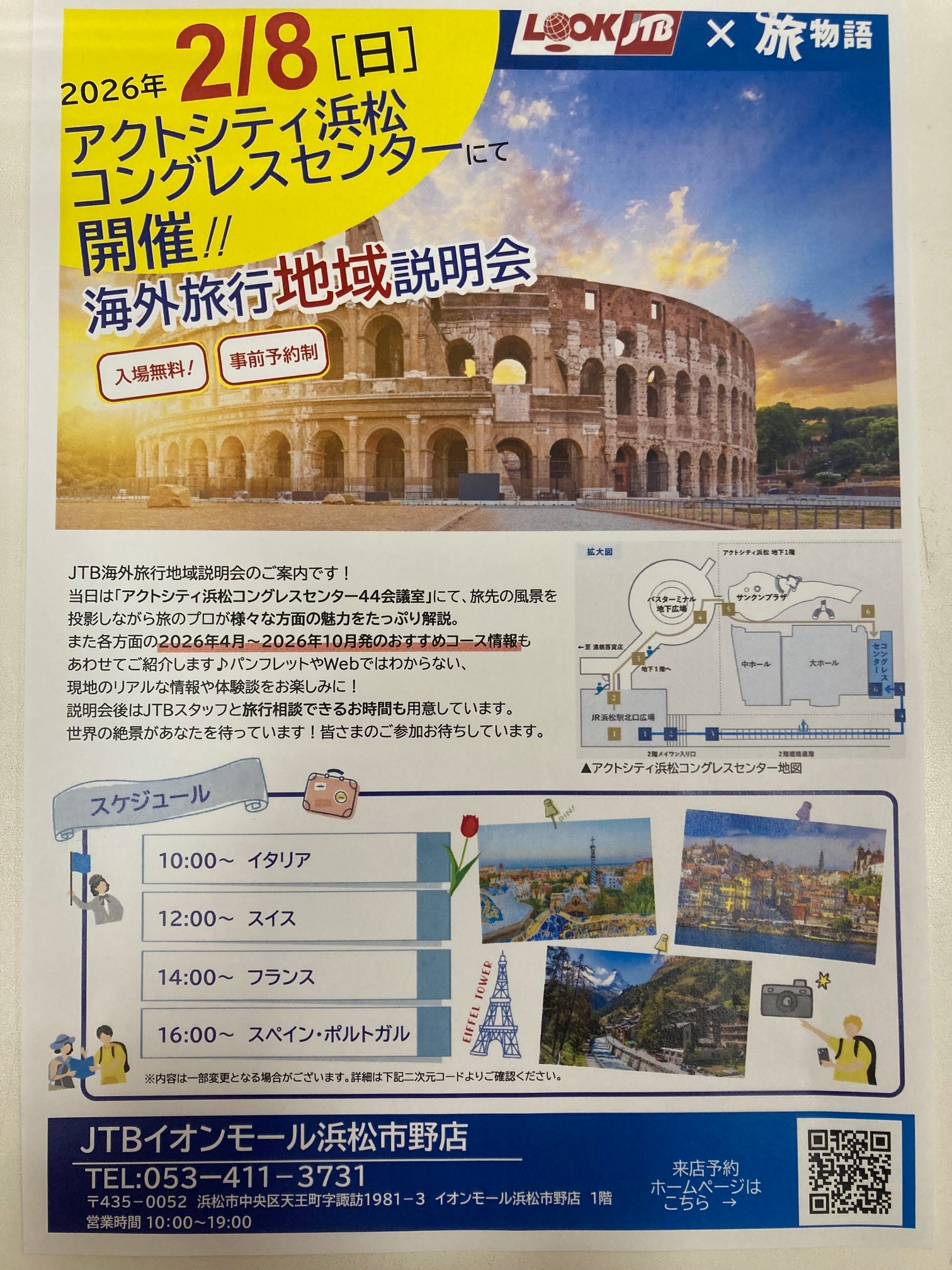 🏪 お申込みはJTBイオンモール浜松市野店へ!