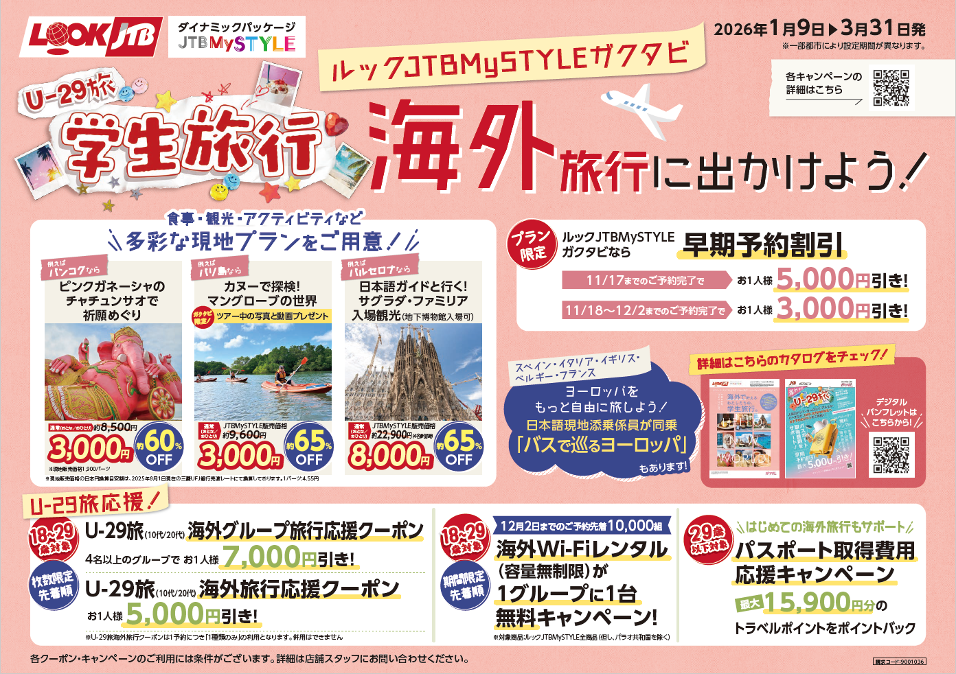 海外旅行も国内旅行もたっぷり充実!はじめての海外旅行や学生旅行に嬉しいポイントがもりだくさん!あまり旅行に慣れていない方でも、サポート充実のJTBなら安心です。