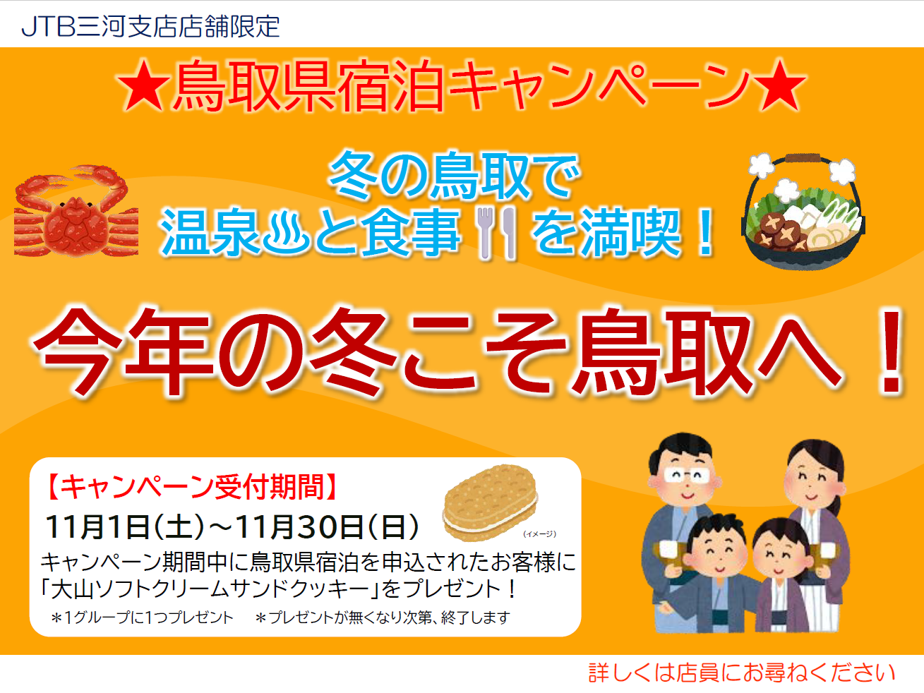 期間中に鳥取県ご宿泊をお申込のお客様に「大山ソフトクリームサンドクッキー」をプレゼントいたします