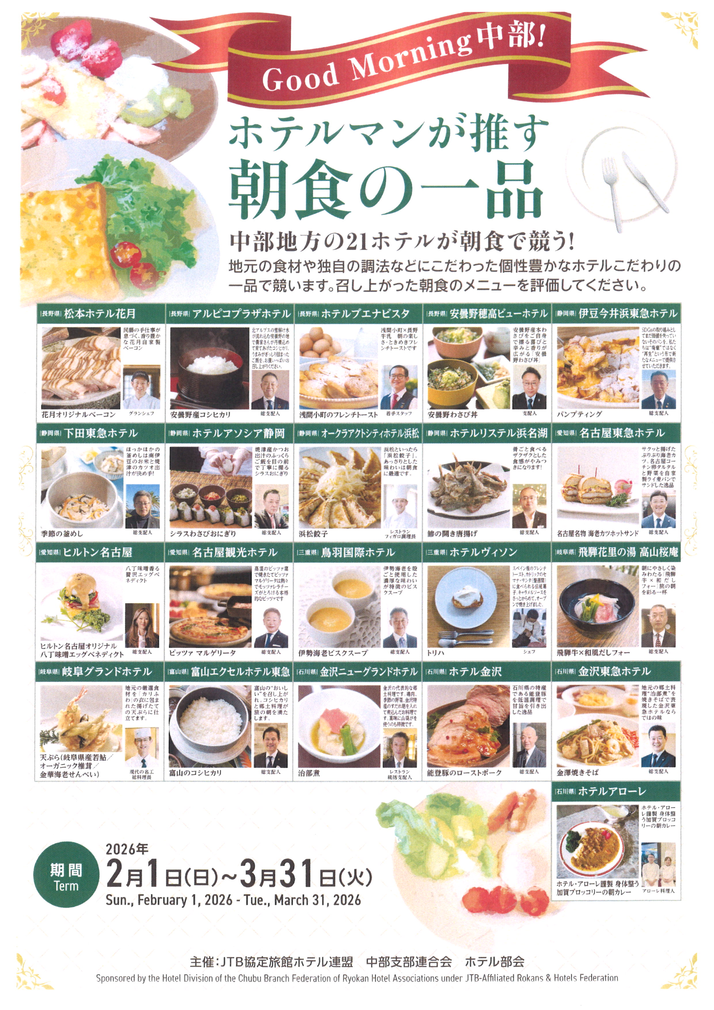 中部7県(長野・静岡・愛知・三重・岐阜・富山・石川)にある21のホテルが自慢の「朝食の一品」で競います!