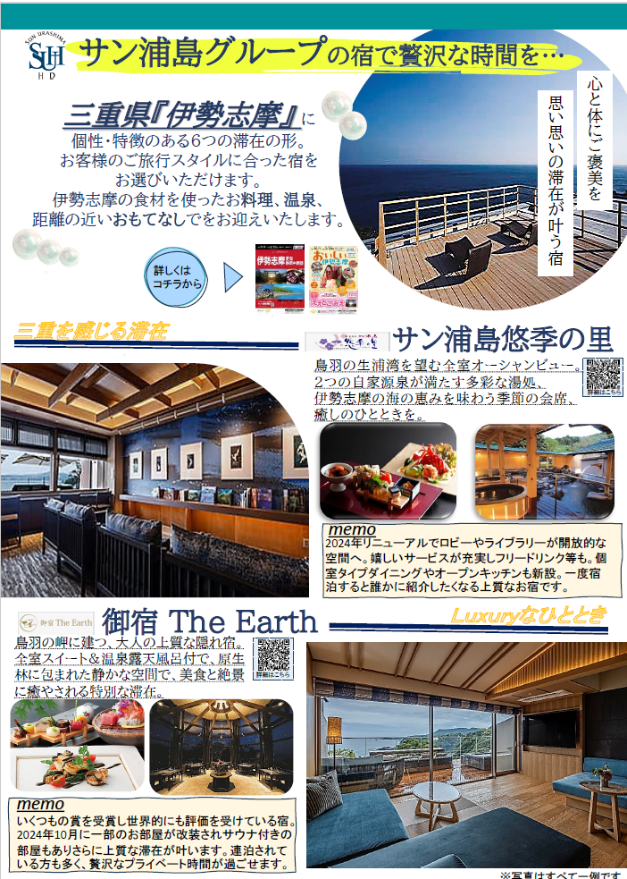 伊勢志摩の食材を使ったお料理、温泉、距離の近いおもてなしでお迎えいたします。