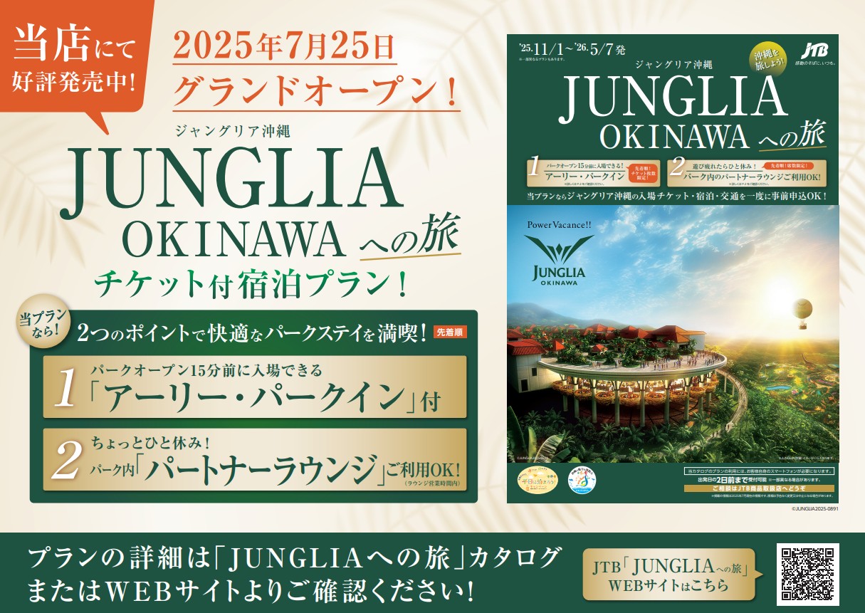 また、JTBでは「JUNGLIA OKINAWAへの旅」の商品をご用意♪