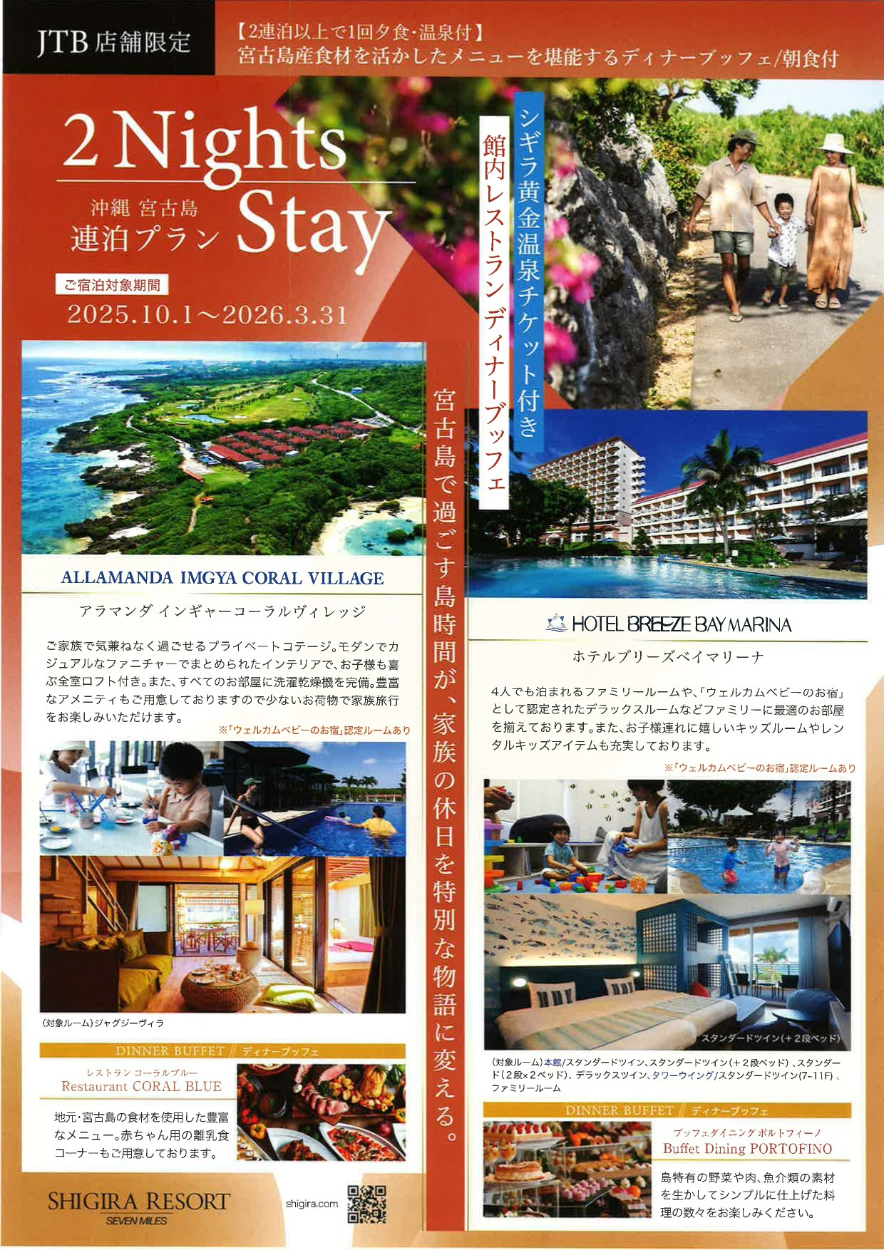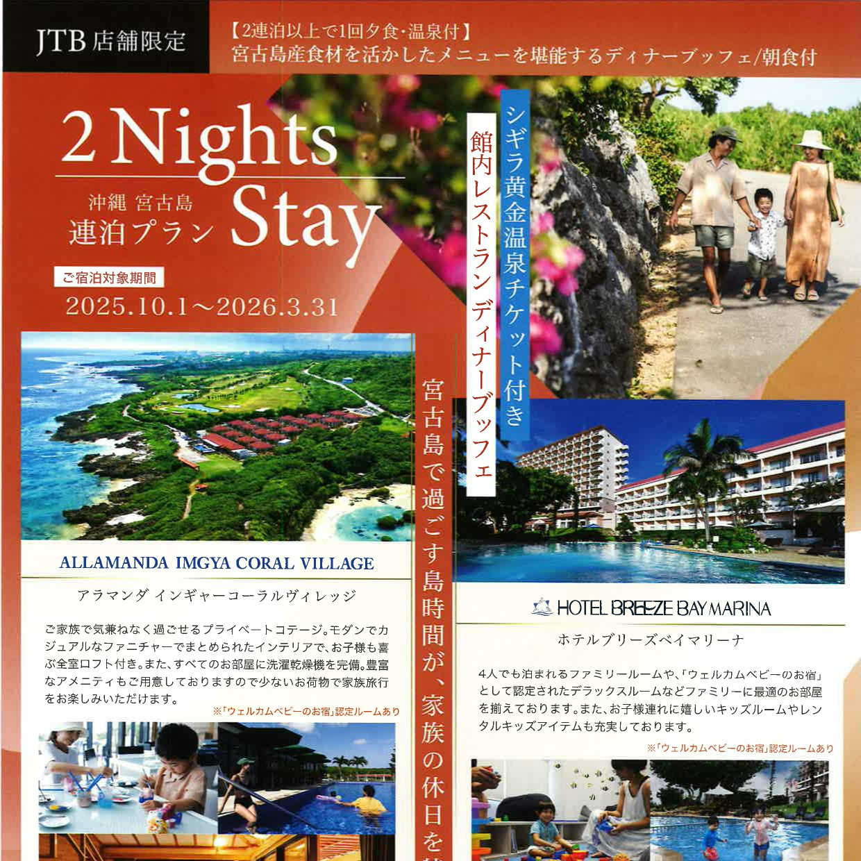 2連泊以上で、夕食1回+シギラ黄金温泉チケット付きの特別プラン!
