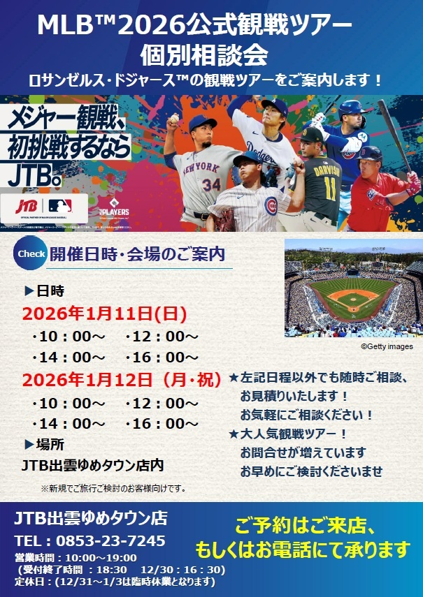 詳細・ご予約はエース JTB 取扱店舗「出雲ゆめタウン店」までお気軽にお問い合わせください!