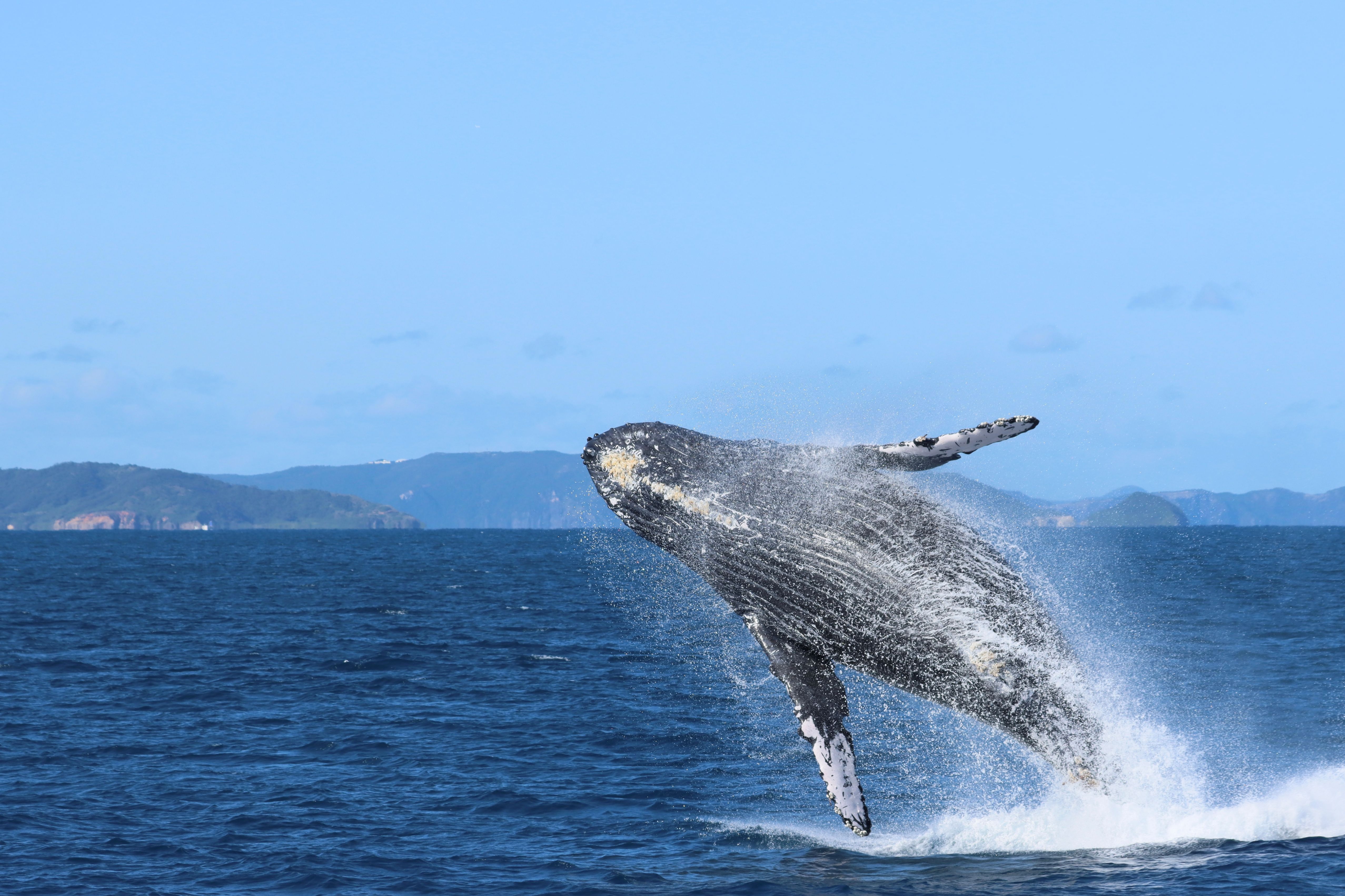 ※掲載写真のようなダイナミックなジャンプは、野生動物のクジラ観測のためまれにしか見ることができません。