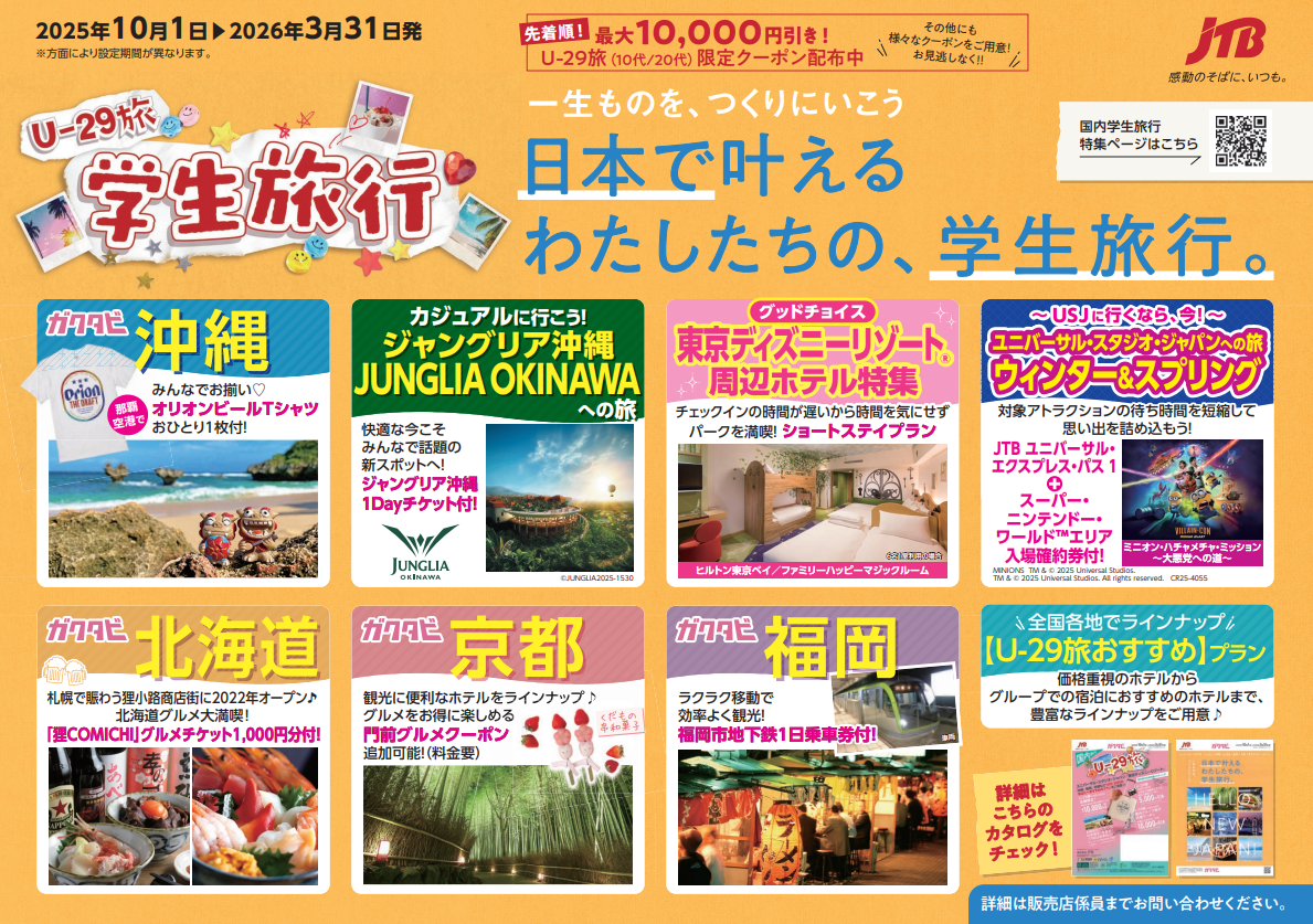 海外旅行も国内旅行もたっぷり充実!はじめての海外旅行や学生旅行に嬉しいポイントがもりだくさん!あまり旅行に慣れていない方でも、サポート充実のJTBなら安心です。