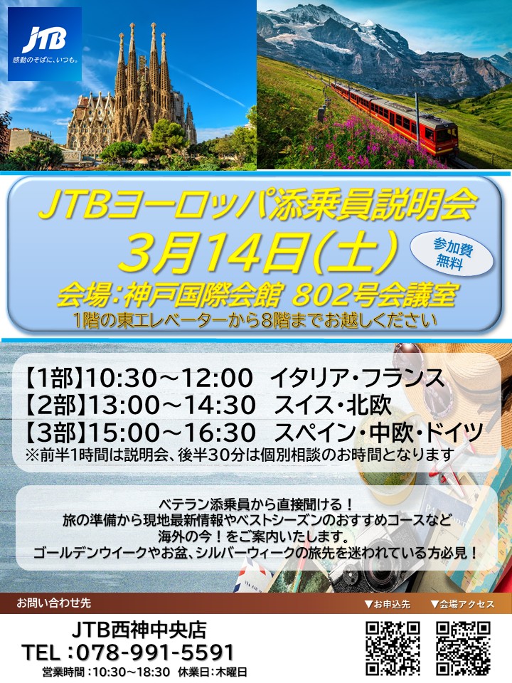 詳細・ご予約は、JTB西神中央店までお気軽にお問い合わせください。