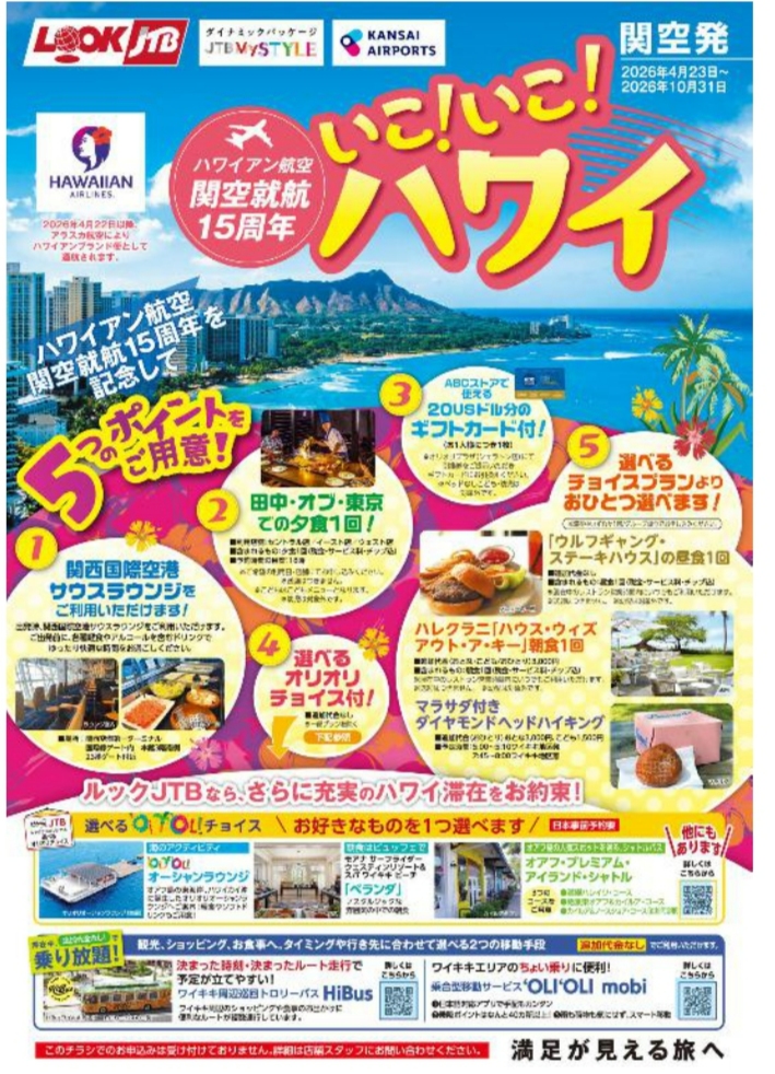 他にも、JTBでのハワイ旅なら、