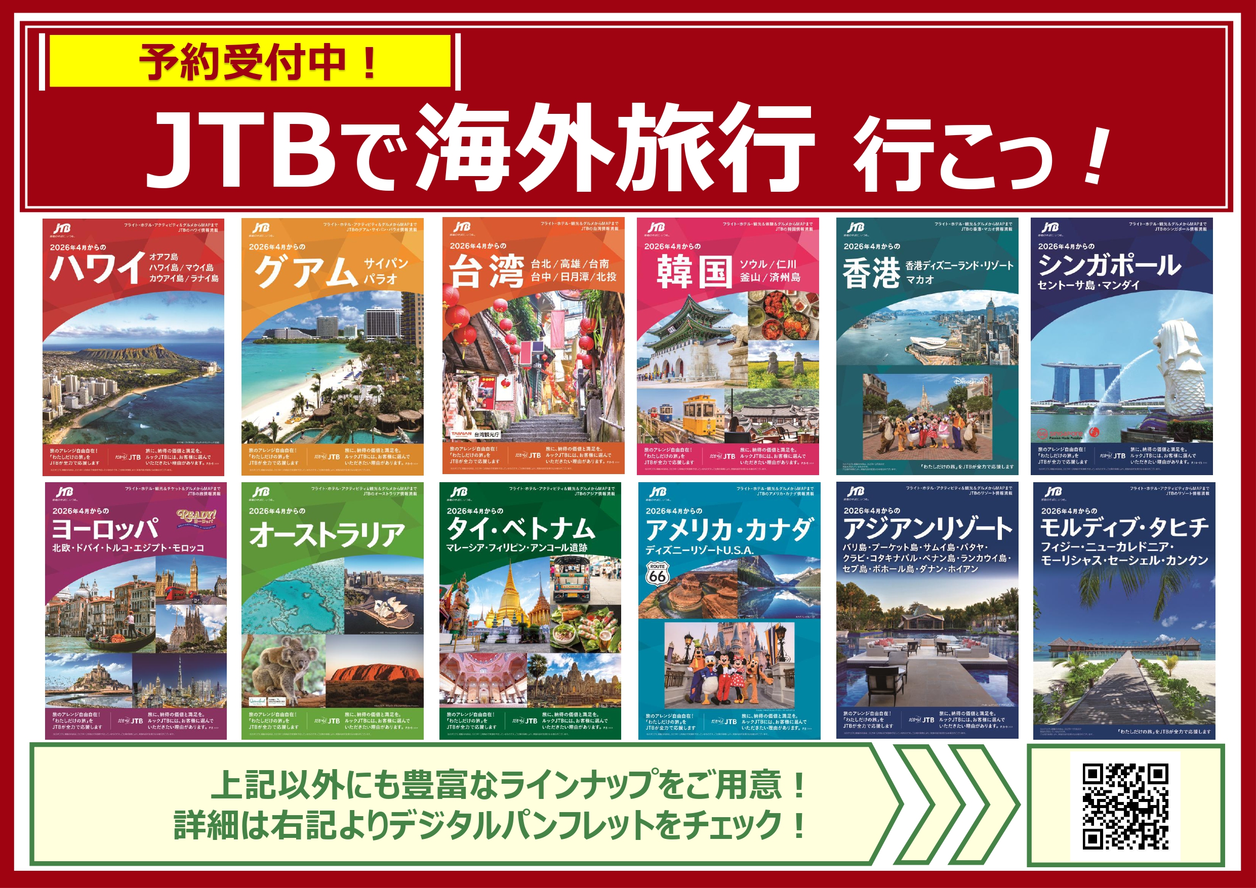 海外旅行も国内旅行もたっぷり充実!はじめての海外旅行や学生旅行に嬉しいポイントがもりだくさん!あまり旅行に慣れていない方でも、サポート充実のJTBなら安心です。