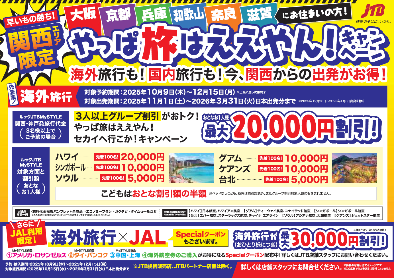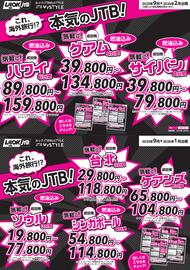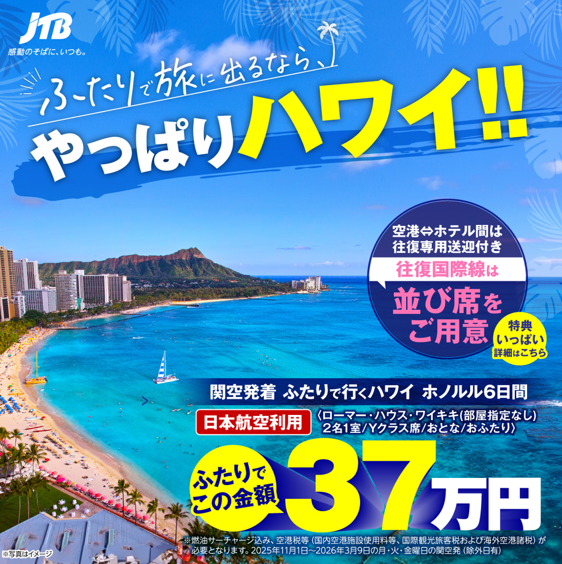 ●対象出発期間:2025年11月1日(土)~2026年3月31日(火)日本出発分まで