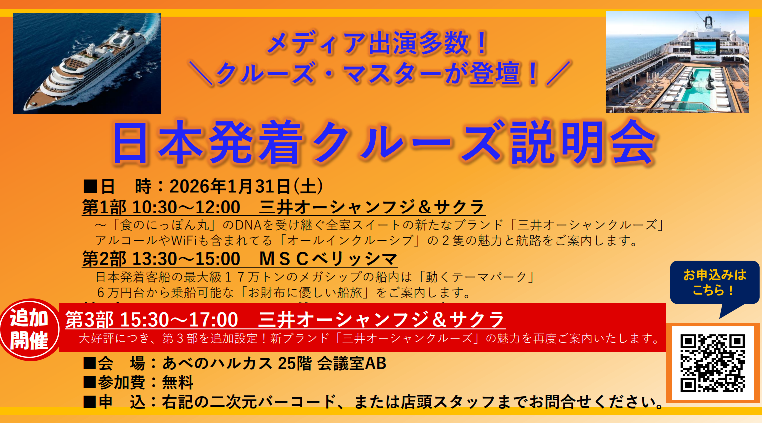 【第2部】 13:30~15:00 MSCベリッシマ⇒残り僅か!