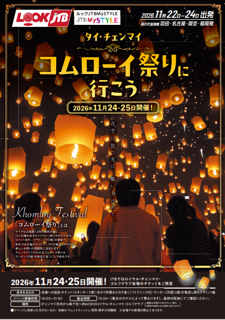 毎年11月の満月の夜にタイ北部チェンマイで開催される、数千〜数万のランタン(熱気球)を夜空に一斉に放つ幻想的な仏教行事。