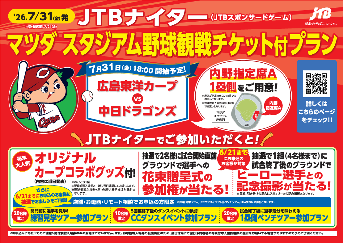 JTB専用プリゲームツアー(所要時間45分)も追加プラン(追加代金要)で申込可能!