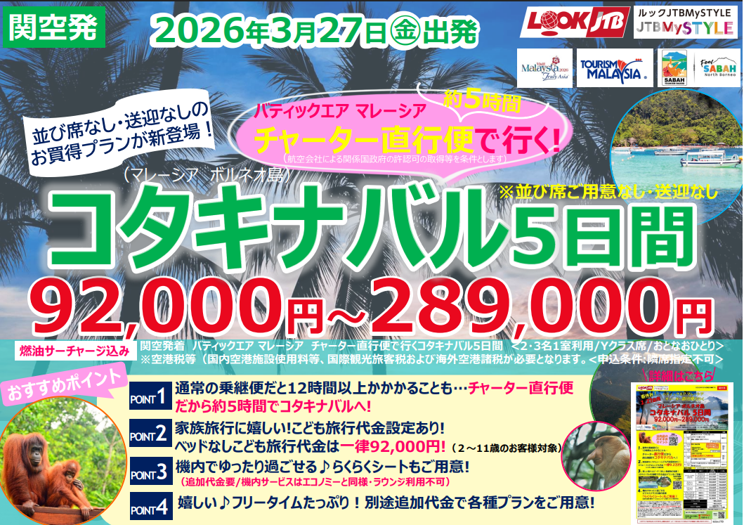マレーシア・ボルネオ島に直行便チャーター商品が登場🛫