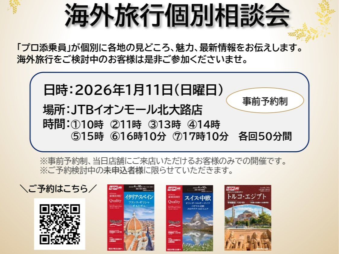JTBイオンモール北大路店へのご相談お待ちいたしております🙍