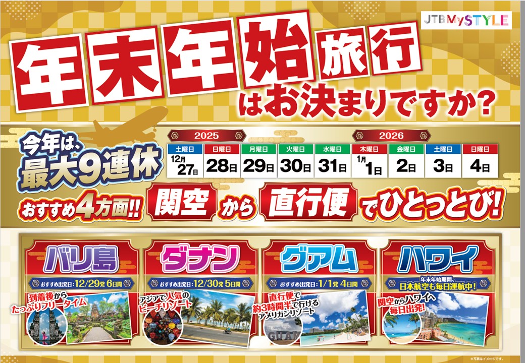 ●対象出発期間:2025年11月1日(土)~2026年3月31日(火)日本出発分まで