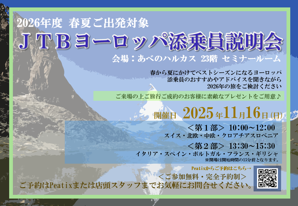 安心で快適な添乗員同行のツアー も11/7(金)に発売予定です!