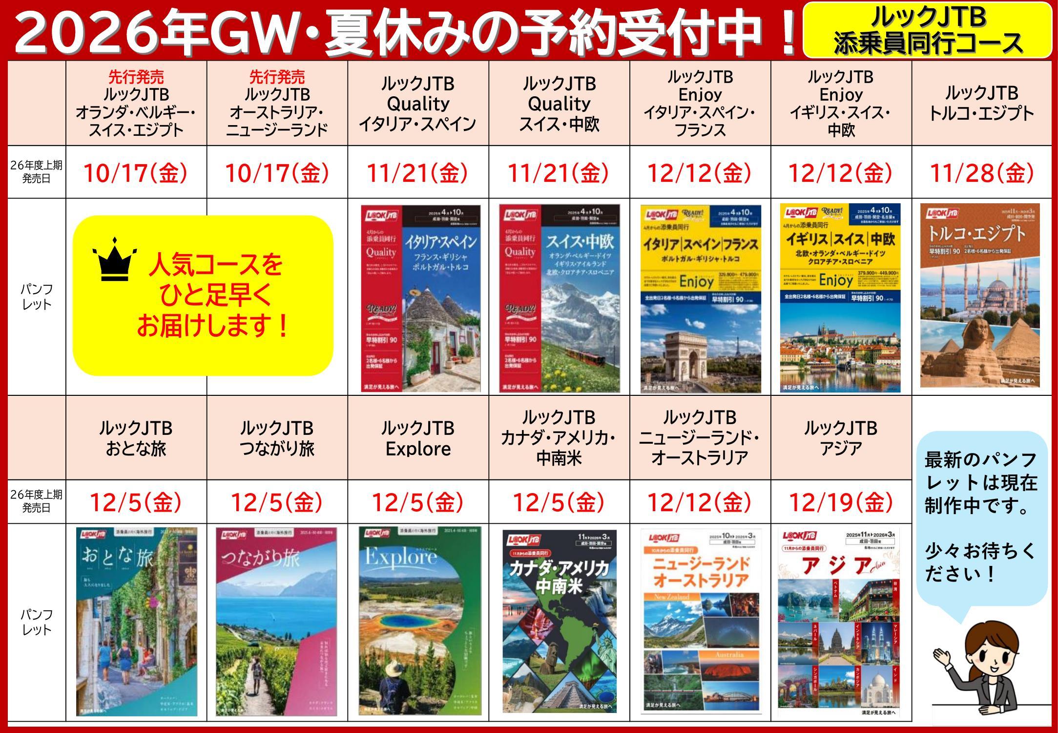 👉 2026年度ルックJTB(添乗員同行コース)発売予定一覧はコチラ