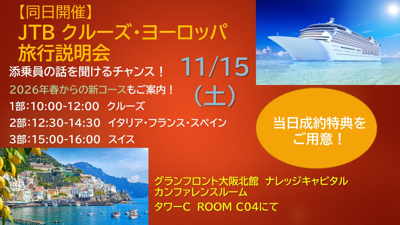 ■11月15日(土)開催 JTB クルーズ&ヨーロッパ旅行説明会