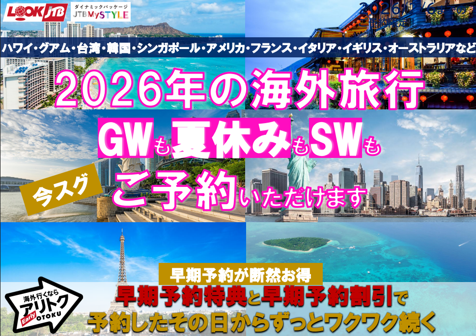 早めのお申込みで少しでもおトクにご旅行へGO!!