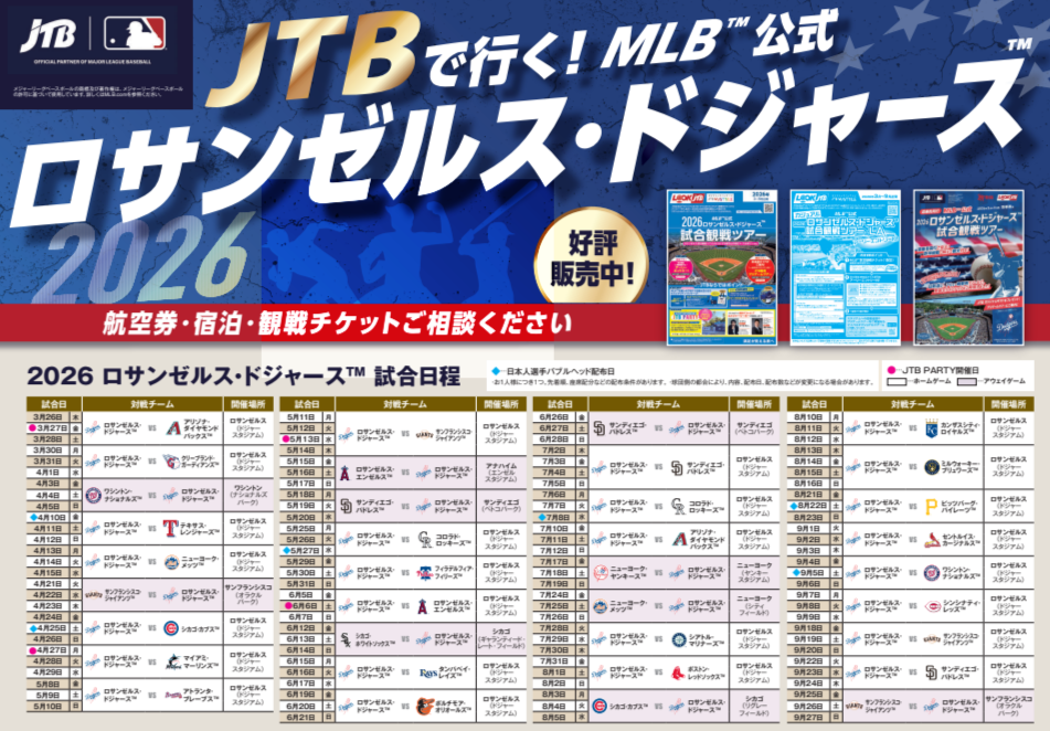 JTBはMLB™(メジャーリーグベースボール)のアジアにおけるトラベル&ホスピタリティ事業のオフィシャルパートナーです。さらに、2025年に日本の旅行会社として初めての「オフィシャルパートナー・オブ・ザ・ロサンゼルス・ドジャース」となりました。