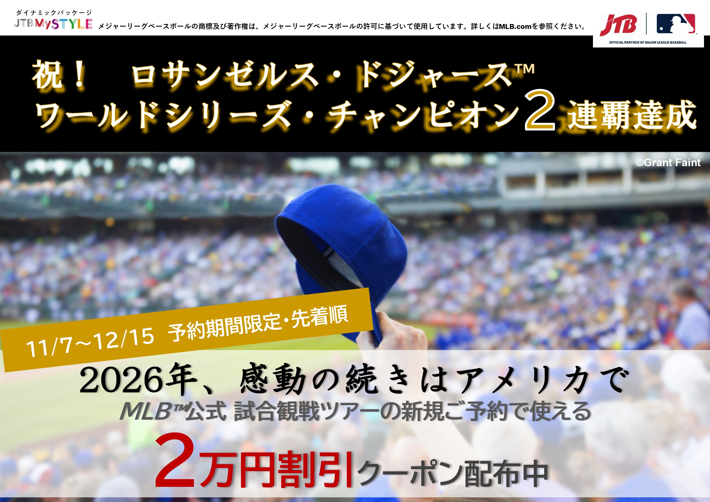 JTBはMLB™(メジャーリーグベースボール)のアジアにおけるトラベル&ホスピタリティ事業のオフィシャルパートナーです。さらに、2025年に日本の旅行会社として初めての「オフィシャルパートナー・オブ・ザ・ロサンゼルス・ドジャース」となりました。