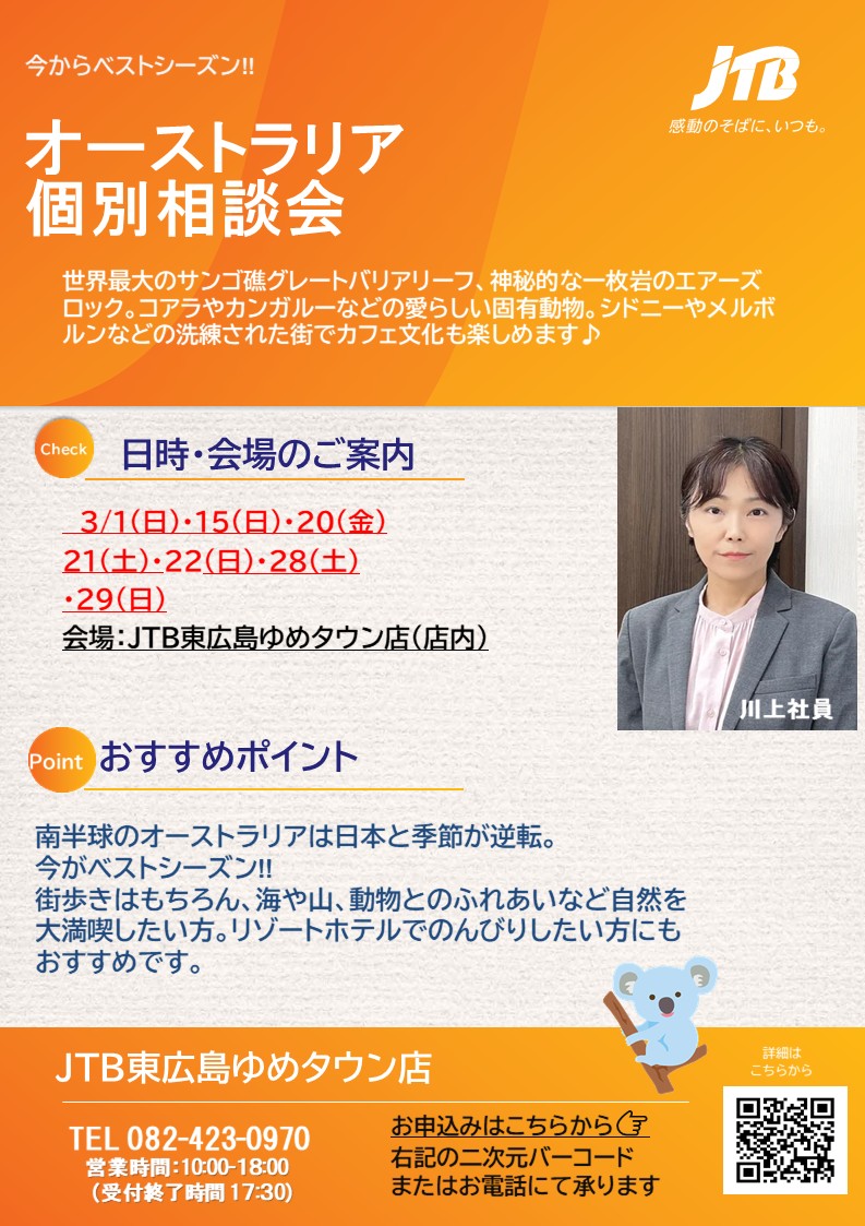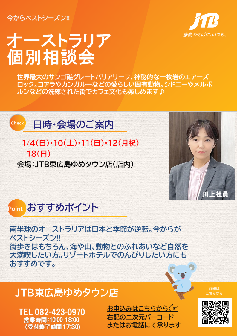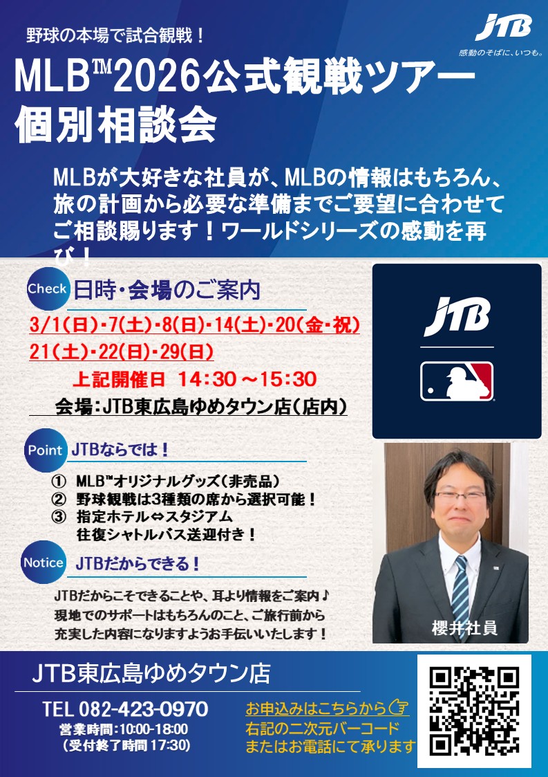 詳細・ご予約はエースJTB取扱店舗「東広島ゆめタウン店」までお気軽にお問い合わせください!