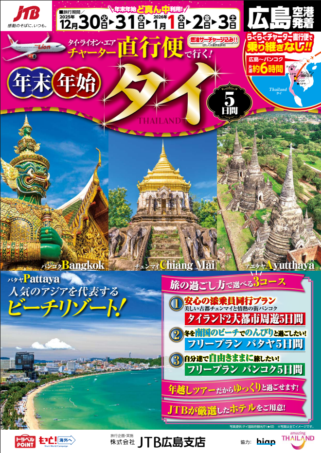 広島発着バンコクチャーター直行便5日間を発売中です!