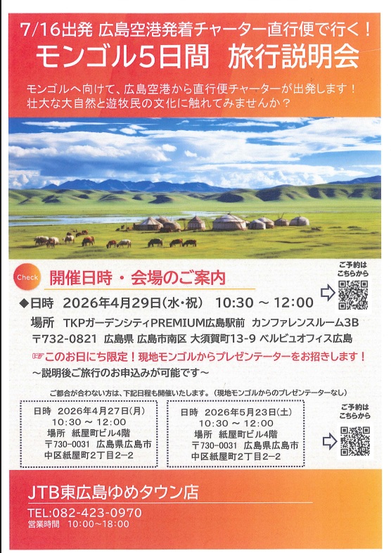 現地モンゴルからプレゼンテーターをお招きします!貴重な機会です。