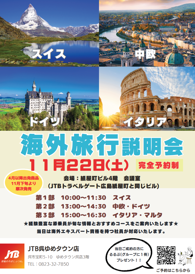 お問い合わせはJTB呉ゆめタウン店へ