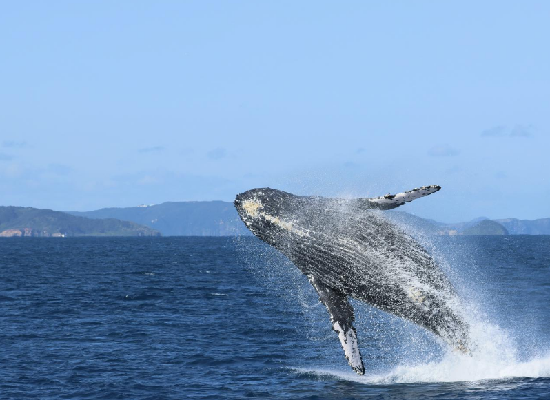 ※掲載写真のようなダイナミックなジャンプは、野生動物のクジラ観測のためまれにしか見ることができません。