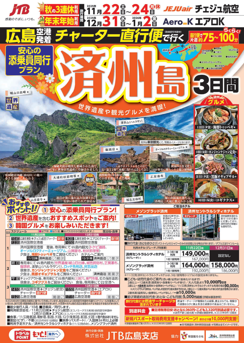 広島空港からラクラク直行便で済州島にいきませんか?