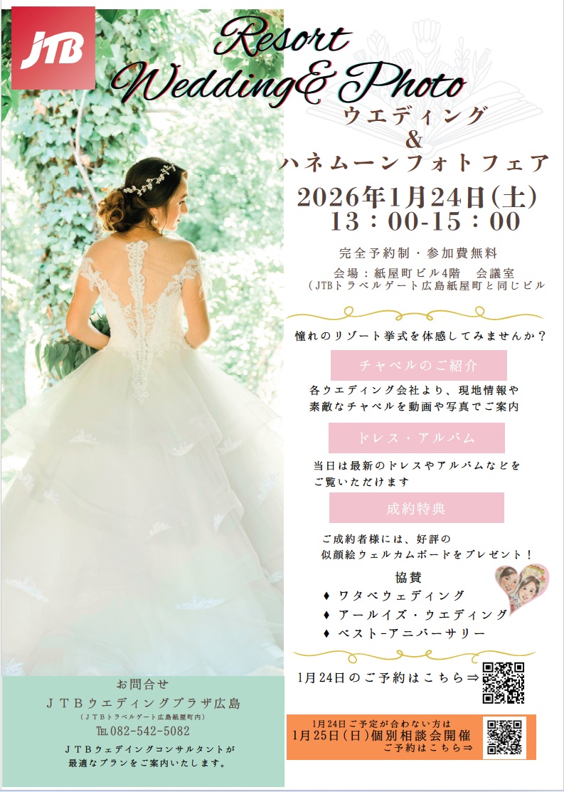 JTB トラベルゲート広島紙屋町 JTB総合提携店 NTAトラベル 広島八丁堀福屋支店 JTBウエディングプラザ広島紙屋町