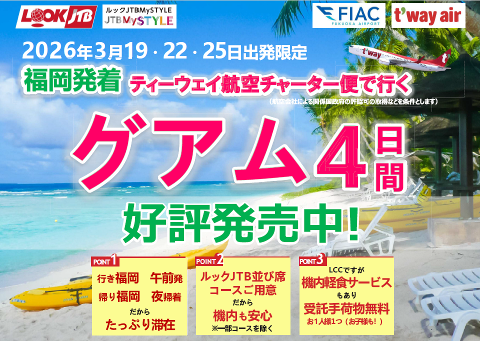 年末出発でご好評いただきました、福岡からグアムへのチャーター直行便を利用した商品が3月出発で再登場!!