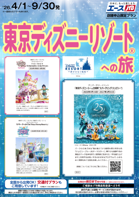 今年は東京ディズニーシーが開園25周年を迎えます! それに伴い東京ディズニーシー25周年“スパークリング・ジュビリー” (開催時期:2026年4月15日~2027年3月31日)が開催!海の魅力をイメージした“ジュビリーブルー”をテーマーカラーに掲げた衣装やショー・グッズが展開され、通年に渡る大規模アニバーサリーイベントがおすすめポイントとなっています✨