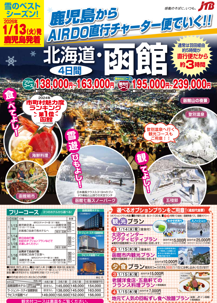 JTBが贈る特別企画―通常は乗り継ぎが必要な函館旅行が、チャーター直行便でぐっと身近に!